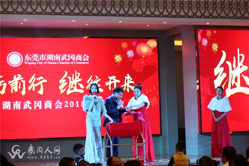 东莞市湖南武冈商会2018迎春年会在美女热情的锣鼓声中正式开始